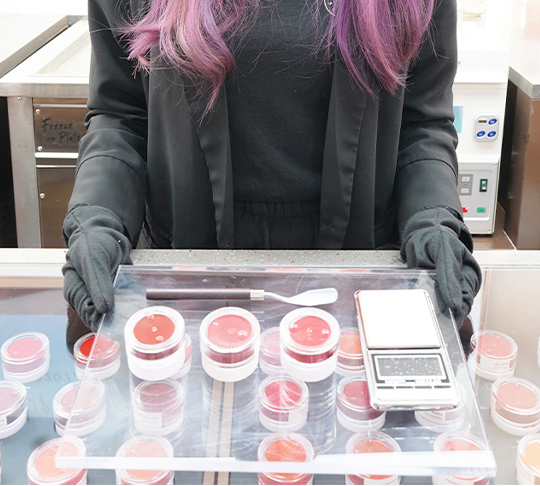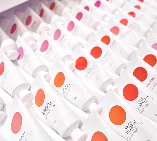 OUT OF COLOURS唇膏體驗館設多款質感可選擇,唇膏可以選擇 Hydra Matte魅惑啞緻、Butter Crème柔潤奪目、天然配方SheerAir鏡光水漾及閃粉配方,另外我們亦有潤唇膏及唇彩可以選擇。我們會提供即棄唇部專用棉花棒供客人嘗試顏色及質感,以便選擇出最適合的配方。